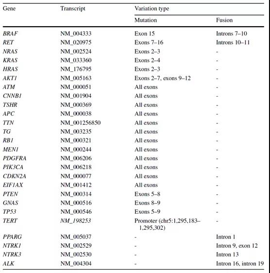 OncoAim®甲状腺癌多基因的NGS检测分析