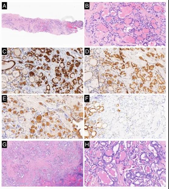 图1. CNB中不确定良恶性病例的匹配切除样本被诊断为滤泡变异型甲状腺乳头状癌