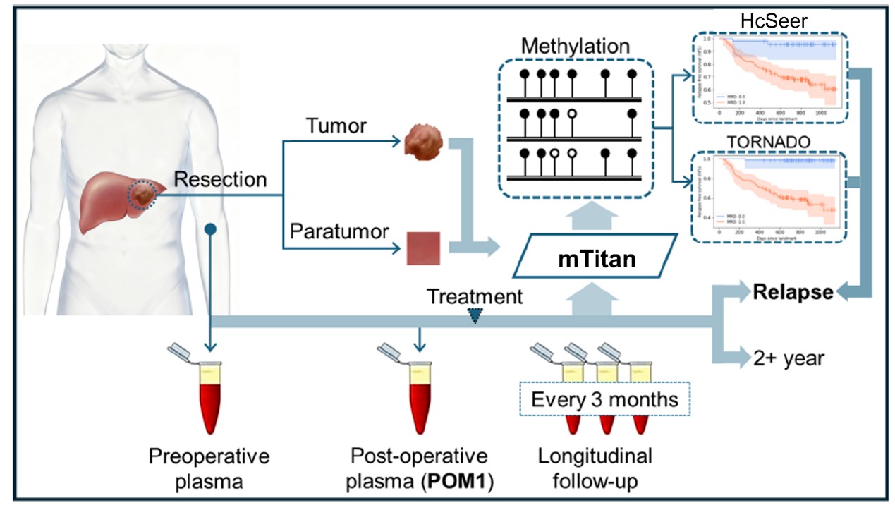 肝细胞癌(HCC)是全球最常见的原发性肝癌类型之一,即使接受根治性切除治疗,仍有超过一半患者在五年内复发,严重影响患者预后。对患者进行精准术前风险分层及术后微小残留病灶(MRD)监控是目前临床上的一大痛点。英国威廉希尔联合复旦大学附属中山医院,采用自主研发的靶向甲基化深度测序技术,利用血浆游离DNA(cfDNA)甲基化特征对HCC患者进行术前风险分层以及术后微小残留病灶(MRD)检测,进而为个体化干预提供全新的分子监测手段。
