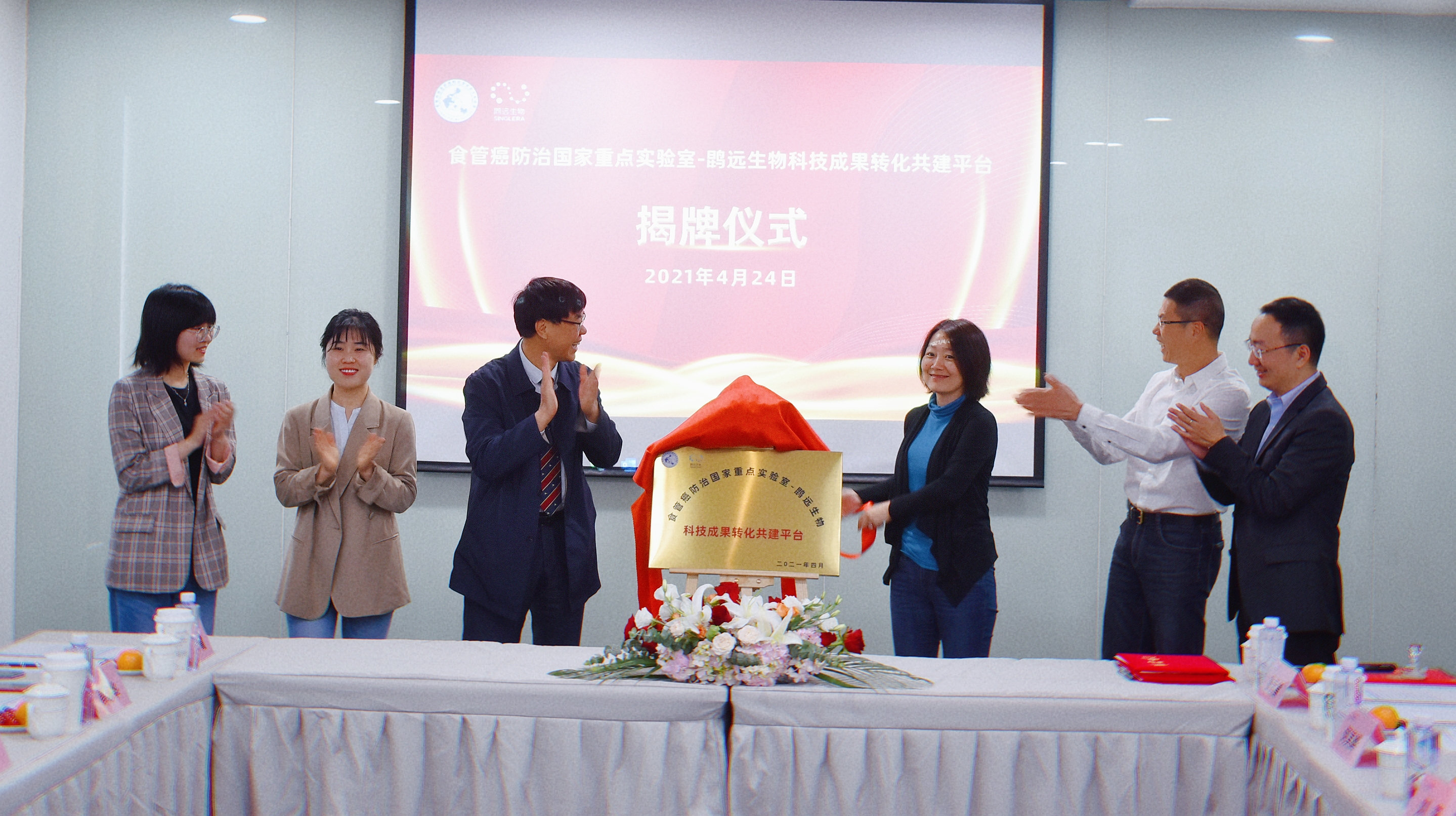 2021年4月24日上午, “食管癌防治国家重点实验室-英国威廉希尔科技成果转化共建平台”揭牌仪式在上海英国威廉希尔总部隆重举行。食管癌防治国家重点实验室主任王立东教授及其团队,英国威廉希尔董事长蔡建华先生,首席执行官张江立先生,首席技术官刘蕊博士等出席了揭牌仪式。