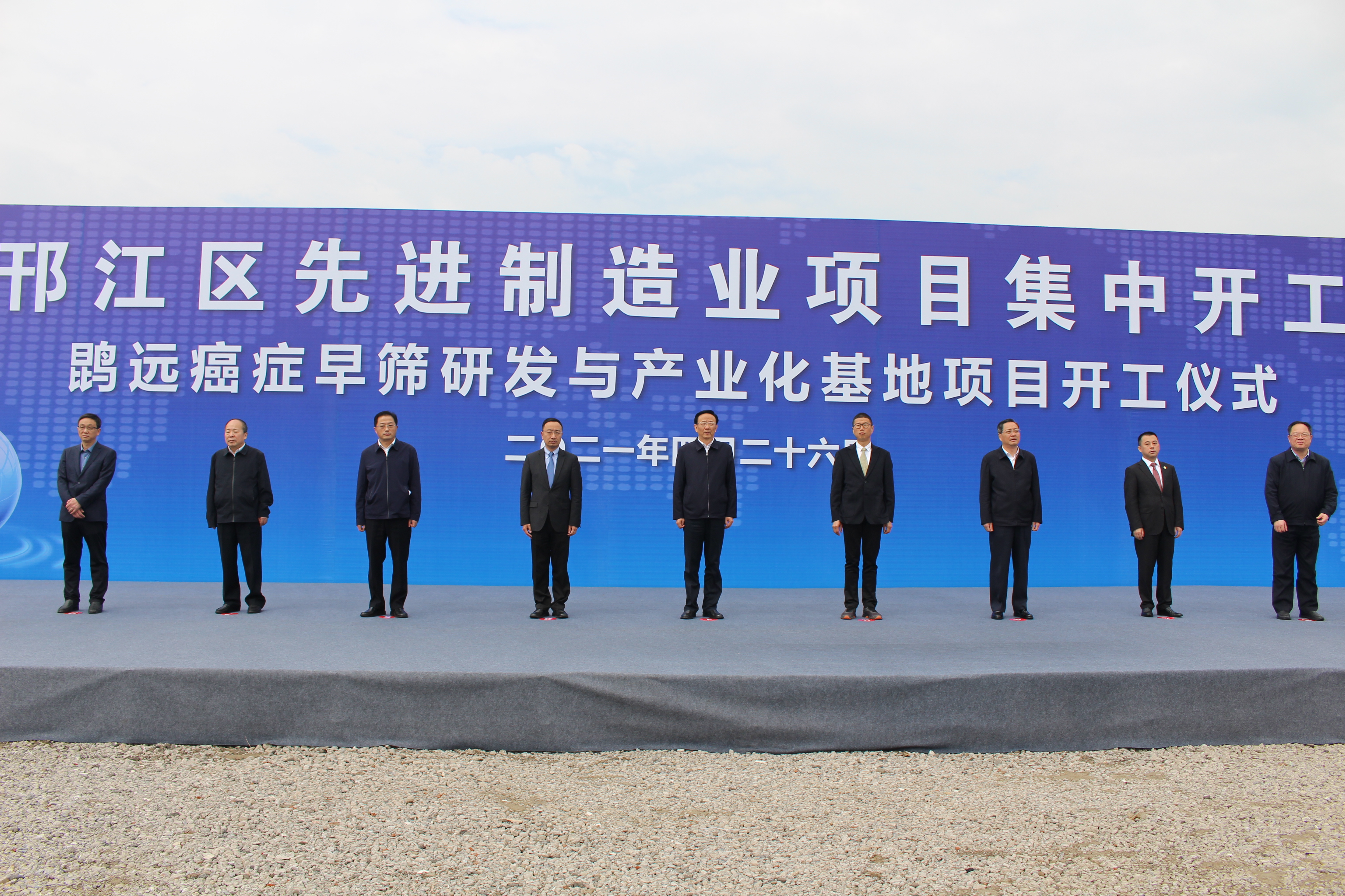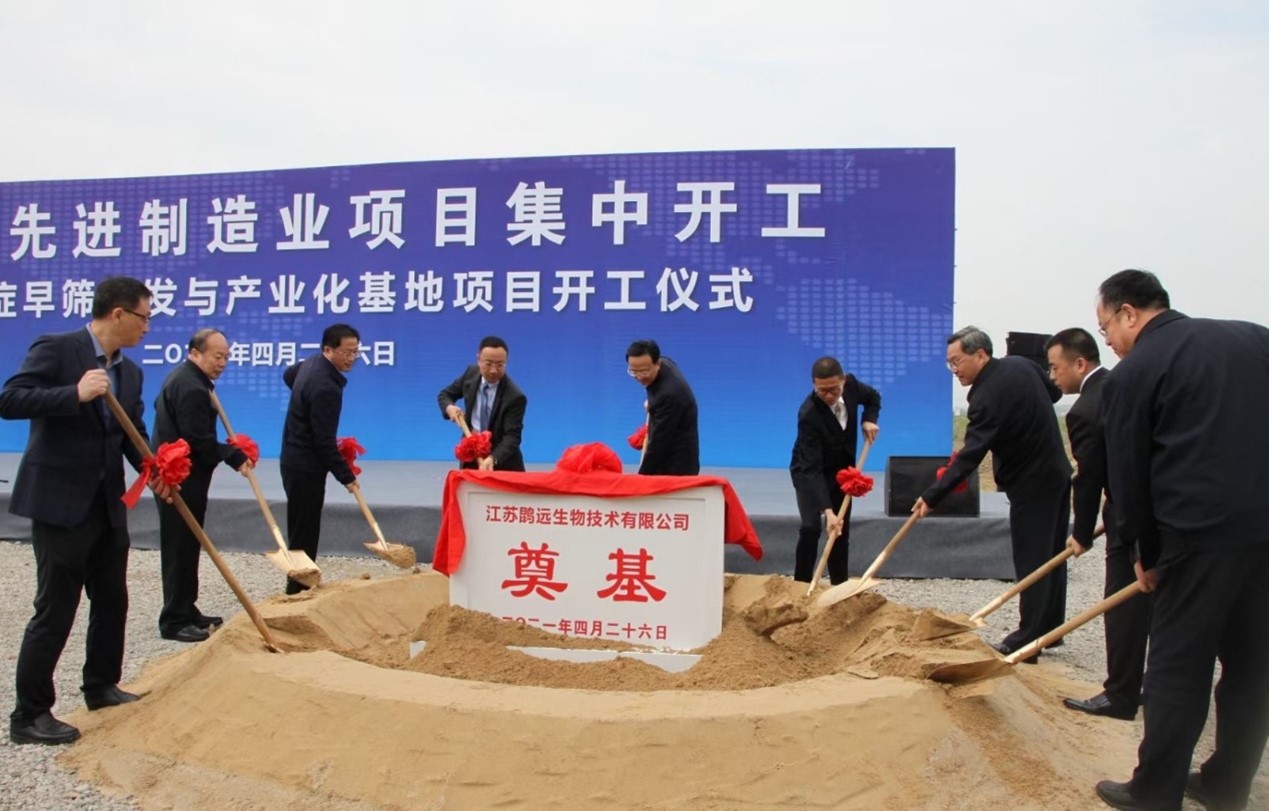 2021年4月26日上午,英国威廉希尔癌症早筛研发与产业化基地开工仪式在扬州高新区生物健康产业园隆重举行。中共扬州市委书记夏心旻,中共扬州市委常委、秘书长韩骅,中共扬州市邗江区委书记钱峰,邗江区人大常委会主任陈佳宏,邗江区政协主席朱跃龙,中共扬州市邗江区委常委、高新区党工委书记、管委会主任叶华生,英国威廉希尔董事长蔡建华,英国威廉希尔首席执行官张江立,扬州建康汇董事长卞晓凯等领导和嘉宾出席了开工仪式。开工仪式由邗江区区长张新钢主持,参加现场开工仪式的还有扬州市市级机关有关部门负责人,扬州市邗江区人大常委会、政协、区主要职能部门及扬州市高新区主要负责人。