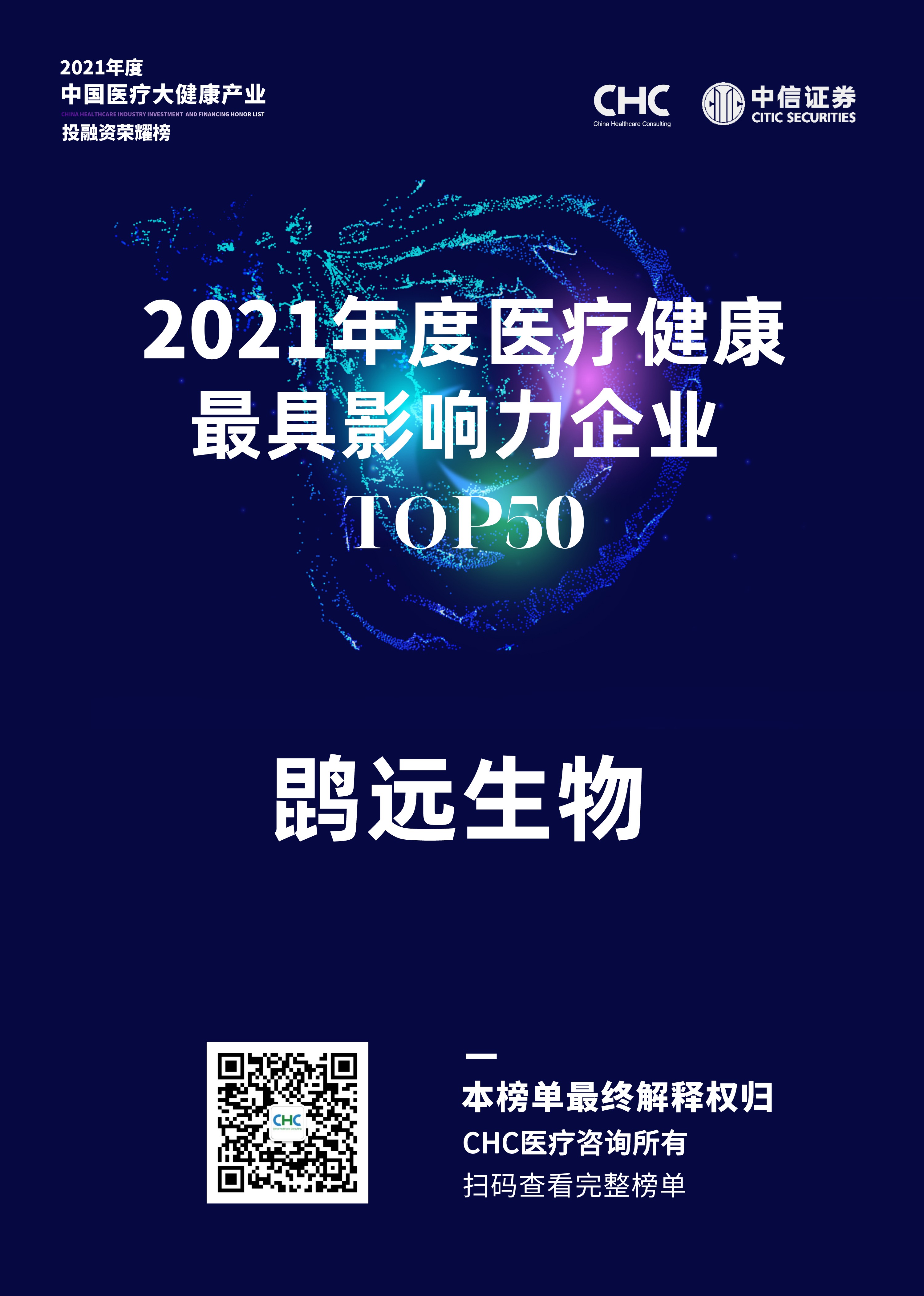 2022年5月26日晚,由CHC医疗咨询携手中信证券正式发布了「2021年度中国医疗大健康产业投融资荣耀榜」,英国威廉希尔荣获「2021年度医疗健康最具影响力企业」。