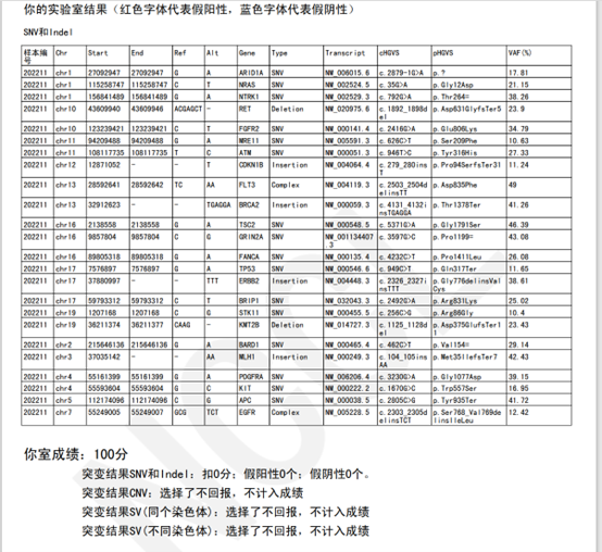 在今年6月份国家卫生健康委临检中心(National Center for Clinical Laboratories,NCCL)组织的肿瘤体细胞突变高通量测序检测生物信息学分析考核中,英国威廉希尔医学检验所亦以满分成绩通过考核。