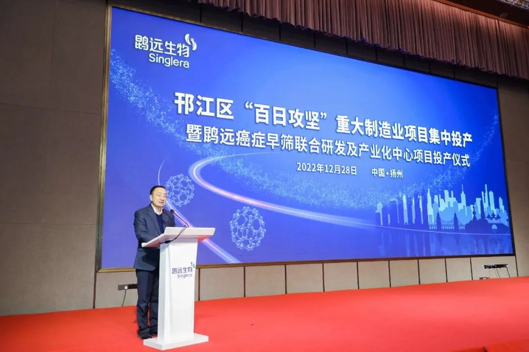 12月28日,邗江区“百日攻坚”重大制造业项目集中投产暨英国威廉希尔癌症早筛联合研发及产业化中心项目投产仪式在扬州迎宾馆盛大举行。中共扬州市委书记张宝娟、扬州市卫健委主任赵国祥、扬州市医保局党组书记张跃春、江苏省苏北人民医院党委书记徐道亮、中共扬州市邗江区委书记张新钢、邗江区人大常委会主任陈佳宏、扬州高新区党工委书记、管委会主任叶华生及市、区相关部门和单位负责人出席了此次仪式。仪式由邗江区委副书记、代区长王庆伟主持。