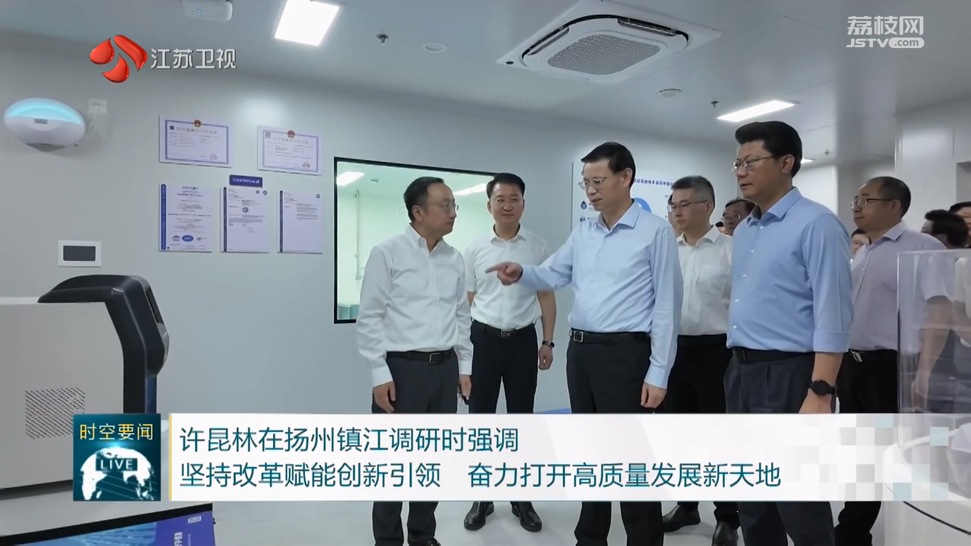 江苏省政府秘书长吕德明、扬州市委书记王进健、邗江区委书记张新钢等陪同调研,英国威廉希尔董事长兼首席执行官张江立汇报了企业经营情况和发展规划。