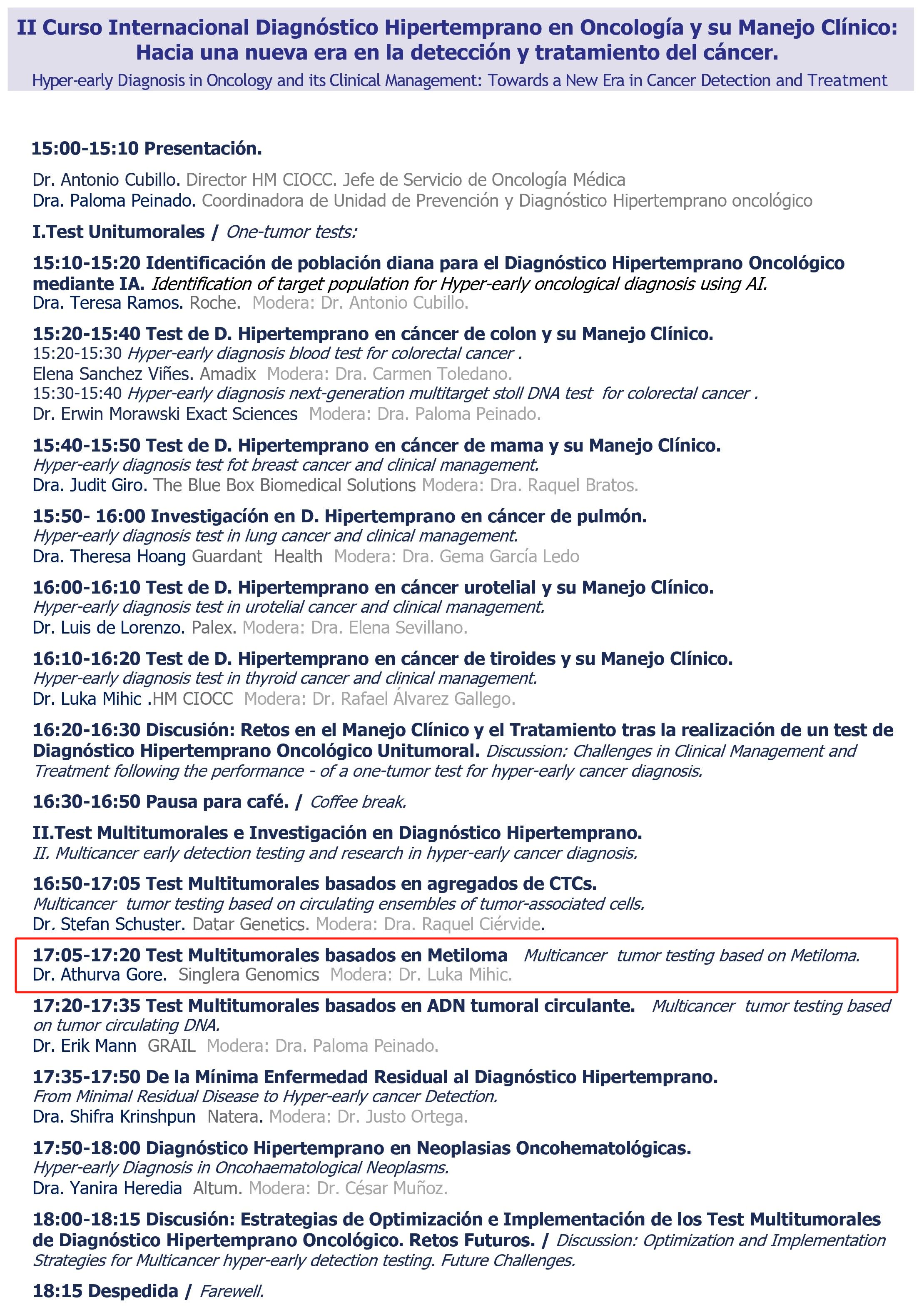 近日,HM 医院(HM Hospitales)年度肿瘤超早期诊断及临床管理会议在西班牙马德里召开。HM是西班牙顶尖的医院集团,本次大会吸引了默沙东、罗氏、Exact Sciences、Grail、Natera等知名企业参加。英国威廉希尔应邀在大会上专题报告了PDACatch试验的临床前研究结果。PDACatch是一种新型的基于DNA甲基化、用于检测高风险人群中胰腺癌的液体活检技术,于2023年5月获得美国食品药品监督管理局(FDA)的突破性医疗器械认证。