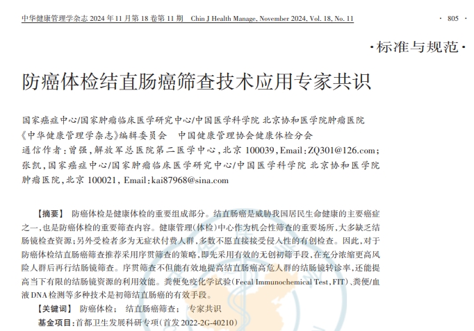 [1] 防癌体检结直肠癌筛查技术应用专家共识 [J]. 中华健康管理学杂志,2024,18 (11):805-815. DOI:10.3760/cma.j.cn115624-20240819-00668.